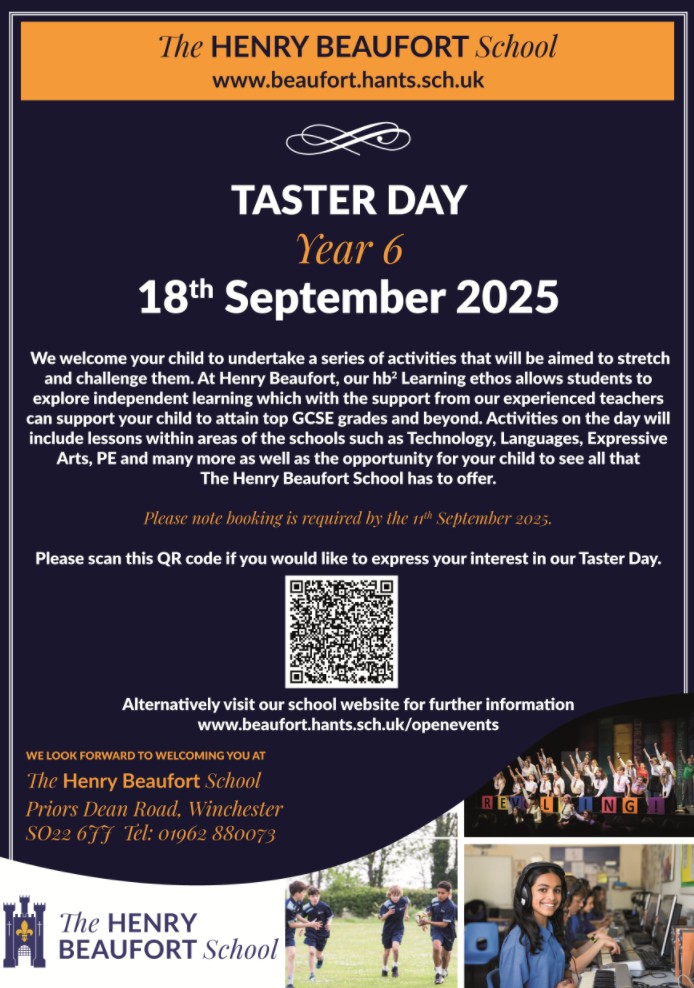 Taster days offer Year 6 pupils a chance to sample a day at The Henry Beaufort School. Taster days are held for Year 6 students to sample a day at The Henry Beaufort School.